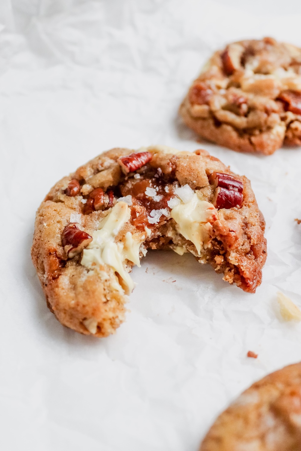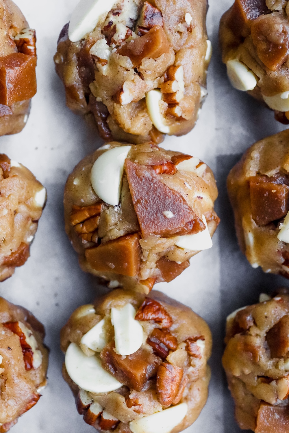 Soft, chewy, warm-spiced cookies with melty white chocolate, buttery toffee, and crunchy toasted pecans.